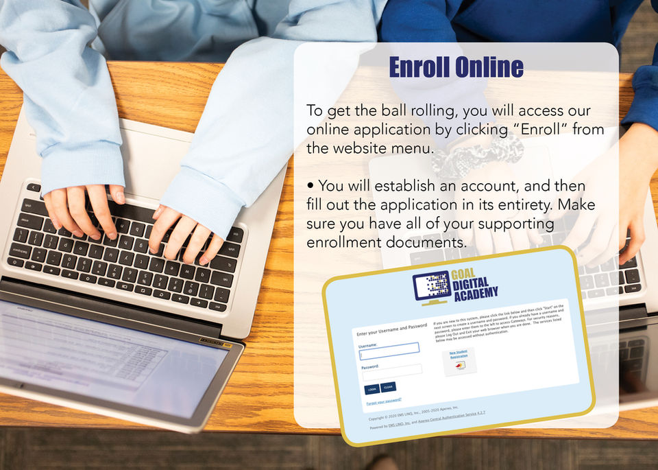 Students must attend 26 hours and 15 minutes per week of classes, so we recommend they schedule school for five hours and 15 minutes per day for five days each week. The content is delivered through Canvas, which is a learning management platform. Students receive a computer from GOAL and can log in and access their classes from any location with wifi access. This can be handy for students who are traveling or working and need flexibility to attend class before or after work or while they are on the road.